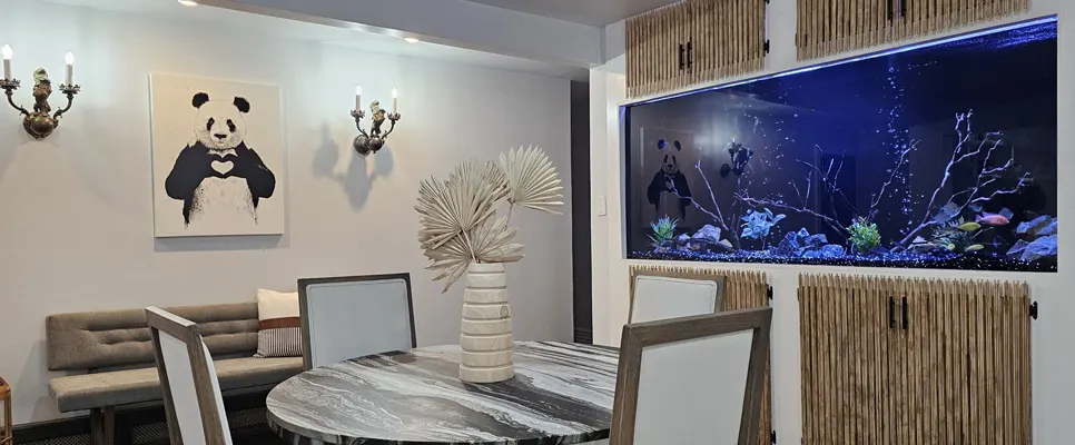 Our gallery showcases freshwater projects in various styles, sizes, and themes. Aqua Creations can bring life and vibrancy to any environment, from sleek modern designs to more natural, organic landscapes. Scroll down to explore a selection of our freshwater aquarium projects and discover the endless possibilities for your aquatic adventure.